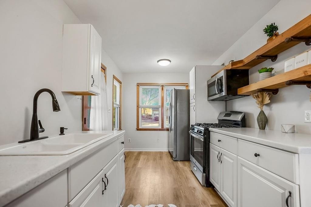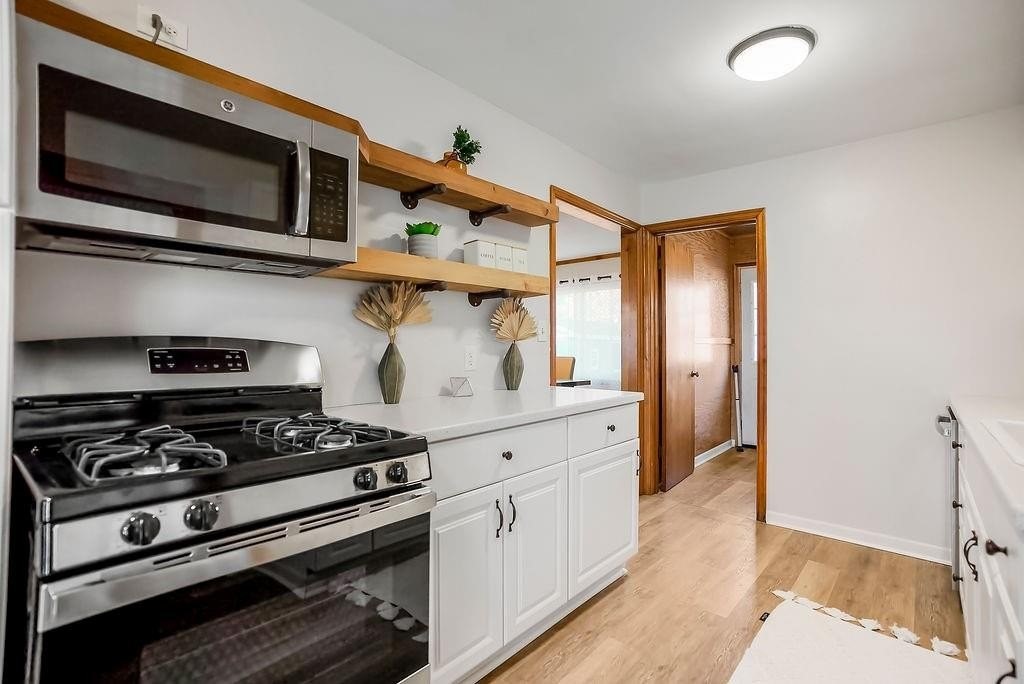 This adorable 2-bed, 1-bath ranch is move-in ready and full of light. Step inside to find beautifully maintained hardwood floors, fresh interior and exterior paint, and large windows that make every room feel bright and welcoming. The kitchen includes all appliances, making this home truly turn-key. Major updates include a 7 year old roof, completed foundation repairs, and new windows for peace of mind. Outside, enjoy the spacious yard with a chicken coop and storage shed that is perfect for hobbyists or anyone who loves a little extra outdoor space. Conveniently located near parks, schools, and downtown Gardner amenities, this home blends comfort and value in one perfect package.